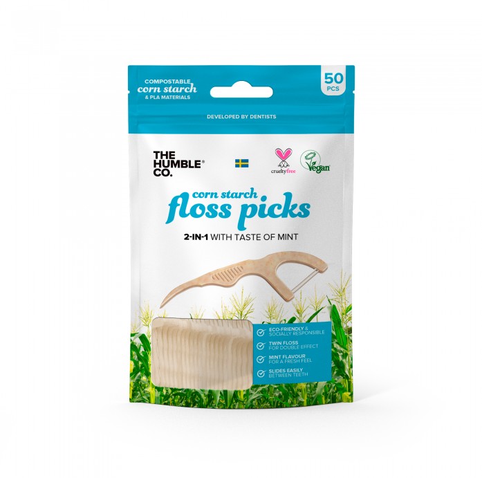 Scobitori 2 in 1, biodegradabile din amidon de porumb si ata dentara cu gust de menta.